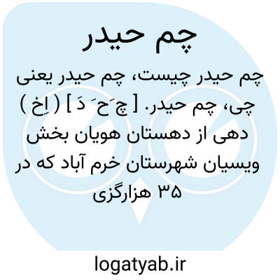 چم حیدر. [ چ َ ح َ دَ ] ( اِخ ) دهی از دهستان آیدغمش بخش فلاورجان شهرستان اصفهان که در 38 هزارگزی جنوب باختر فلاورجان و 5 هزارگزی خاور پل زمانخان واقع است. کوهستانی و معتدل است و 362 تن سکنه دارد. آبش از زاینده رود. محصولش غلات و برنج. شغل اهالی زراعت، صنایع دستی زنان کرباس بافی و راهش مالرو است. ( از فرهنگ جغرافیایی ایران ج 10 ).