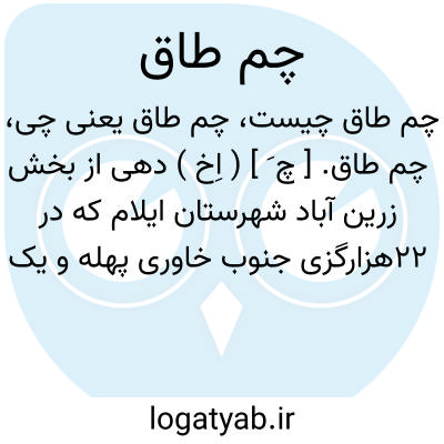 چم طاق. [ چ َ ] ( اِخ ) دهی از بخش زرین آباد شهرستان ایلام که در 22هزارگزی جنوب خاوری پهله و یک هزارگزی جنوب راه مالرو دهلران واقع است. کوهستانی و گرمسیر است. 220 تن سکنه دارد. آبش از رودخانه سیمینه. محصولش غلات و لبنیات و شغل اهالی زراعت و گله داری است و در زمستان به مرز عراق میروند. ( از فرهنگ جغرافیایی ایران ج 5 ).