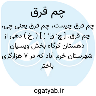 چم قرق. [ چ َ ق ُ رُ ] ( اِخ ) دهی از دهستان کرگاه بخش ویسیان شهرستان خرم آباد که در 7 هزارگزی باختر ماسور، کنار شمالی راه شوسه خرم آباد به اندیمشک واقع است. جلگه و معتدل است و 150 تن سکنه دارد. آبش از چشمه سار، محصولش غلات و لبنیات. شغل اهالی زراعت و گله داری و راهش اتومبیل رو است. ساکنین آبادی از طایفه میر هستند. ( از فرهنگ جغرافیایی ایران ج 6 ).