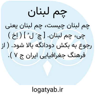 چم لبنان. [ چ َ ل ُ ] ( اِخ ) رجوع به بکش دودانگه بالا شود. ( از فرهنگ جغرافیایی ایران ج 7 ).