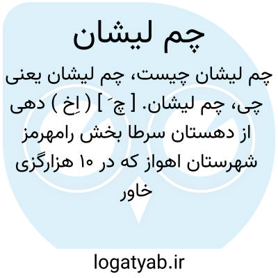 چم لیشان. [ چ َ ] ( اِخ ) دهی از دهستان سرطا بخش رامهرمز شهرستان اهواز که در 10 هزارگزی خاور رامهرمز، کنار راه شوسه سابق ماماتین به رامهرمز واقع است. کوهستانی و گرمسیر است و 65 تن سکنه دارد. آبش از رودخانه رامهرمز. محصولش غلات و برنج. شغل اهالی زراعت وراهش مالرو است. ( از فرهنگ جغرافیایی ایران ج 6 ).