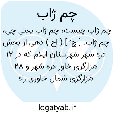 چم ژاب. [ چ َ ] ( اِخ ) دهی از بخش دره شهر شهرستان ایلام که در 12 هزارگزی خاور دره شهر و 28 هزارگزی شمال خاوری راه دره شهر به ماژین واقع است.کوهستانی و گرمسیر است و 226 تن سکنه دارد. آبش از چشمه. محصولش غلات، حبوبات و لبنیات و شغل اهالی زراعت و گله داری است. ( از فرهنگ جغرافیایی ایران ج 5 ).