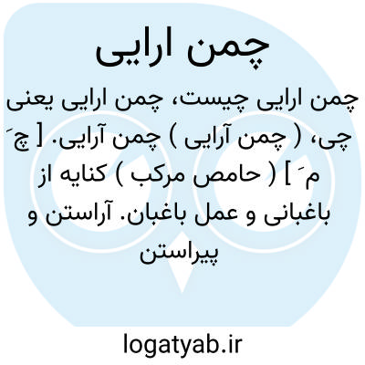 ( چمن آرایی ) چمن آرایی. [ چ َ م َ ] ( حامص مرکب ) کنایه از باغبانی و عمل باغبان. آراستن و پیراستن درختها و بوته ها و گلهای باغ و بستان. رجوع به چمن آرای شود. || آرایش دادن و آراسته ساختن بستان و باغ و زینت دادن و زیبا ساختن آن، چنانکه گلها مر گلشن را. رجوع به چمن و چمن آرای شود.