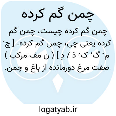 چمن گم کرده. [ چ َ م َ گ ُ ک َ دَ / دِ ] ( ن مف مرکب ) صفت مرغ دورمانده از باغ و چمن. ( از آنندراج ):