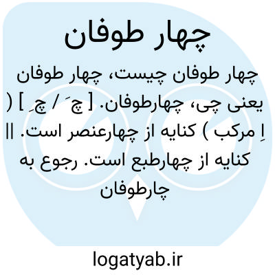 چهارطوفان. [ چ َ / چ ِ ] ( اِ مرکب ) کنایه از چهارعنصر است. || کنایه از چهارطبع است. رجوع به چارطوفان شود.