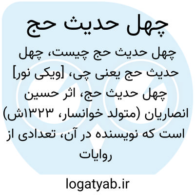 [ویکی اهل البیت] چهل حدیث حج ( از انصاریان). حسین انصاریان از اساتید حوزه علمیه قم و خطیبان مشهور است که آثار ارزنده بسیاری نیز تدوین نموده است