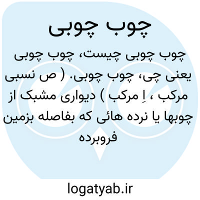 چوب چوبی. ( ص نسبی مرکب، اِ مرکب ) دیواری مشبک از چوبها یا نرده هائی که بفاصله بزمین فروبرده باشند. دیوار یادر مشبک و عمودی با چوب. نرده که از چوبهای موازی قائم یا غیر آن بهمان صفت بسازند. ( یادداشت مؤلف ).