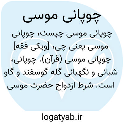 [ویکی فقه] چوپانی موسی (قرآن). چوپانی، شبانی و نگهبانی گله گوسفند و گاو است. شرط ازدواج حضرت موسی علیه السلام، با دختر حضرت شعیب علیه السّلام هشت یا ده سال، چوپانی بود.