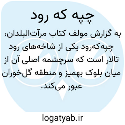 چپه که رود. [ ] ( اِخ ) مؤلف مرآت البلدان نویسد: «نام قریه ای از قرای مازندران است که در ساحل «چپه که رود» ( یکی از شعبات تالاراب ) واقع شده و معروف است که مقبره ابراهیم بن ادهم در این قریه میباشد». ( مرآت البلدان ج 4 ص 213 ).