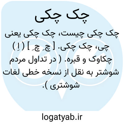 چک چکی. [ چ ِ چ ِ ] ( اِ ) چکاوک و قبره. ( در تداول مردم شوشتر به نقل از نسخه خطی لغات شوشتری ). || کارد یا چاقوی مخصوص آشپزخانه. ( در اصطلاح روستائیان فیض آباد محولات بخش تربت حیدریه ).