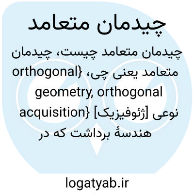 {orthogonal geometry, orthogonal acquisition} [ژئوفیزیک] نوعی هندسۀ برداشت که در آن خطوط چشمه و گیرنده عمود بر یکدیگرند