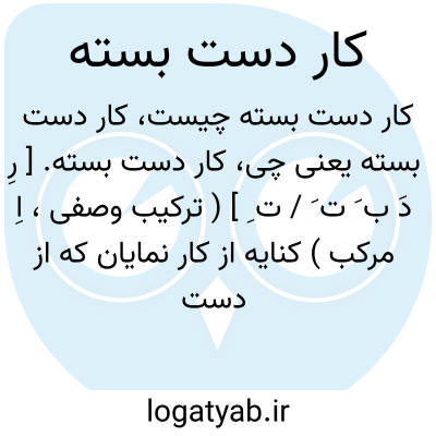 کار دست بسته. [ رِ دَ ب َ ت َ / ت ِ ] ( ترکیب وصفی، اِ مرکب ) کنایه از کار نمایان که از دست دیگران به آسانی برنیاید. ( آنندراج ). کار مشکل که از دست دیگران به آسانی صورت نبندد. ( غیاث، از چراغ هدایت و بهار عجم ): نشد درست به هندوستان شکسته ما نماز بود درو کار دست بسته ما.محمد قلی سلیم ( ازآنندراج ).