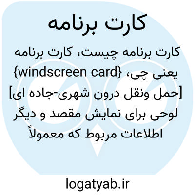{windscreen card} [حمل ونقل درون شهری-جاده ای] لوحی برای نمایش مقصد و دیگر اطلاعات مربوط که معمولاً در سمت راست و پایین شیشۀ جلوی وسیلۀ نقلیۀ عمومی قرار داده می شود