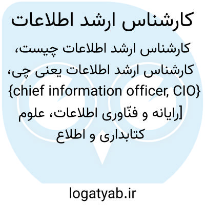 {chief information officer, CIO} [رایانه و فنّاوری اطلاعات، علوم کتابداری و اطلاع رسانی] فردی در یک سازمان انتفاعی یا غیرانتفاعی که مدیریت جریان اطلاعات سازمانی، ازجمله خدمات کتابخانه ای و رایانه ای، را بر عهده دارد