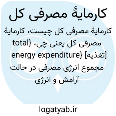 {total energy expenditure} [تغذیه] مجموع انرژی مصرفی در حالت آرامش و انرژی مصرفی در حالت فعالیت و انرژی حاصل از اثر حرارتی که فرد در بیست وچهار ساعت صرف می کند متـ. انرژی مصرفی کل