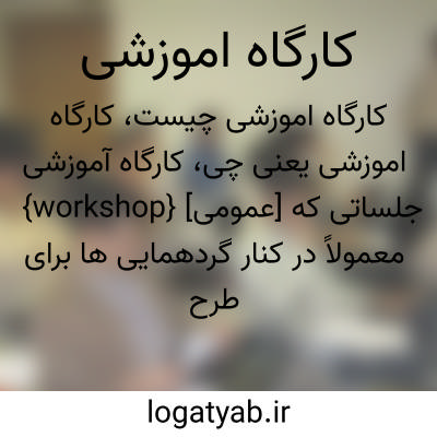 {workshop} [عمومی] جلساتی که معمولاً در کنار گردهمایی ها برای طرح مشکلات علمی یا بررسی موضوع های مورد بحث در گردهمایی و ارائۀ راه حل های آنها، با همفکری و همکاری شرکت کنندگان، تشکیل می شود