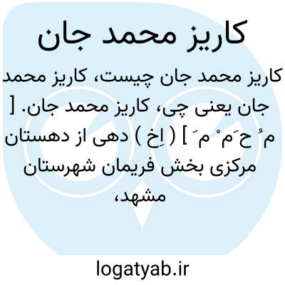 کاریز محمد جان. [ م ُ ح َم ْ م َ ] ( اِخ ) دهی از دهستان مرکزی بخش فریمان شهرستان مشهد، در 22هزارگزی خاور فریمان و 8هزارگزی شمال شوسه عمومی مشهد به تربت جام. جلگه و معتدل و سکنه آن 356 تن است. قنات دارد. محصول آن غلات و بنشن و تریاک و میوه جات و شغل اهالی زراعت است. راه مالرو دارد. در تابستان اتومبیل میرود. ( از فرهنگ جغرافیایی ایران ج 9 ).
