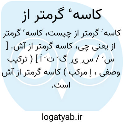 کاسه گرمتر از آش. [ س َ / س ِ ی ِ گ َ ت َ اَ ] ( ترکیب وصفی، اِ مرکب ) کاسه گرمتر از آش است. این مثل را در جایی گویند که شخصی برای اتمام کار غیری گرمتر از صاحب معامله باشد و در نسخه مخلص کنایه از امر محال [ است ] چه اگر آش را در کاسه کنند کاسه را گرمتر میتواند کرد نه گرمتر از آش، اما گرمتر بودن کاسه از آش خلاف واقع [ است ]: ( آنندراج ):