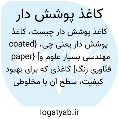 {coated paper} [مهندسی بسپار علوم و فنّاورى رنگ] کاغذی که برای بهبود کیفیت، سطح آن با مخلوطی از پیونده ها، مثل نشاسته یا شیرابۀ بسپارها، و/ یا رنگ دانه آغشته و پوشانده می شود