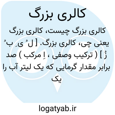 کالری بزرگ. [ ل ُ ی ِ ب ُ زُ ] ( ترکیب وصفی، اِ مرکب ) صد برابر مقدار گرمایی که یک لیتر آب را یک درجه گرم کند.