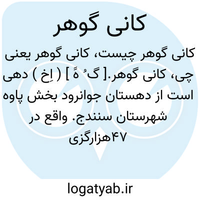 کانی گوهر.[ گ ُ هََ ] ( اِخ ) دهی است از دهستان جوانرود بخش پاوه شهرستان سنندج. واقع در 47هزارگزی جنوب باختری قلعه جوانرود. ناحیه ای است کوهستانی سردسیر و دارای بیست تن سکنه است. ( از فرهنگ جغرافیائی ایران ج 5 ).