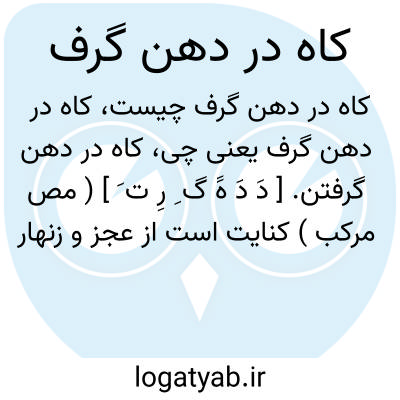 کاه در دهن گرفتن. [ دَ دَ هََ گ ِ رِ ت َ ] ( مص مرکب ) کنایت است از عجز و زنهار خواستن، چه زنهاری برگ کاه در دهن گرفته امان می خواهد و این رسم هندوستان است. ( غیاث ).
