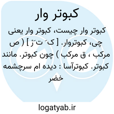 کبوتروار. [ ک َ ت َرْ ] ( ص مرکب، ق مرکب ) چون کبوتر. مانند کبوتر. کبوترآسا: