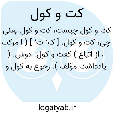 کت و کول. [ ک َ ت ُ ] ( اِ مرکب، از اتباع ) کفت و کول. دوش. ( یادداشت مؤلف ). رجوع به کول و رجوع به کت شود.