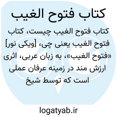 [ویکی نور] «فتوح الغیب»، به زبان عربی، اثری ارزش مند در زمینه عرفان عملی است که توسط شیخ عبد القادر گیلانی به رشته ی تحریر درآمده است.