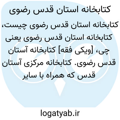[ویکی فقه] کتابخانه آستان قدس رضوی. کتابخانه مرکزی آستان قدس که همراه با سایر کتابخانه های وابسته، موزه ها، و مرکز اسناد آن "سازمان کتابخانه ها، موزه ها، و مرکز اسناد آستان قدس رضوی" نامیده می شود، از مهم ترین گنجینه های فرهنگی ایران و جهان اسلام است که در ضلع شرقی حرم مطهر امام رضا (علیه السّلام) در بست شیخ طوسی شهر مشهد قرار دارد و دارای گنجینه ای ارزشمند از کتاب های خطی نفیس و کمیاب و قرآن های خطی باارزش است.