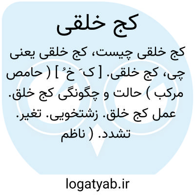 ۱ - بد خویی بد خلقی بد اخقی. ۲ - عصبانیت: [ من از کج خلقی مجلس را ترک کردم ].