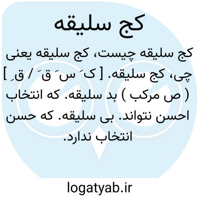 کج سلیقه. [ ک َ س َ ق َ / ق ِ ] ( ص مرکب ) بد سلیقه. که انتخاب احسن نتواند. بی سلیقه. که حسن انتخاب ندارد. ( یادداشت مؤلف ). که به گزینی نتواند.