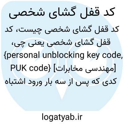 {personal unblocking key code, PUK code} [مهندسی مخابرات] کدی که پس از سه بار ورود اشتباه شناسه، قادر به رفع مسدودیت از گوشی تلفن همراه است