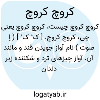 کروچ کروچ. [ ک ُ ک ُ ] ( اِ صوت ) نام آواز جویدن قند و مانند آن. آواز چیزهای ترد و شکننده زیر دندان چون قند و نان خشک و خیار و مانند آن. ( یادداشت مؤلف ).