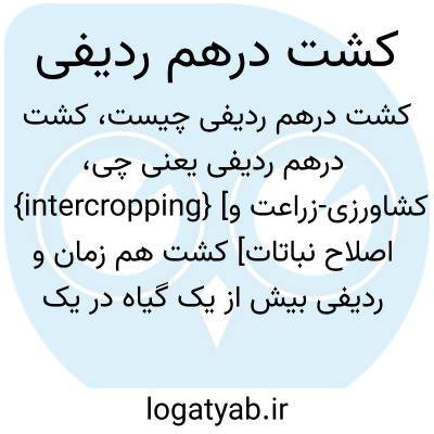 {intercropping} [کشاورزی-زراعت و اصلاح نباتات] کشت هم زمان و ردیفی بیش از یک گیاه در یک قطعه زمین و در یک سال زراعی