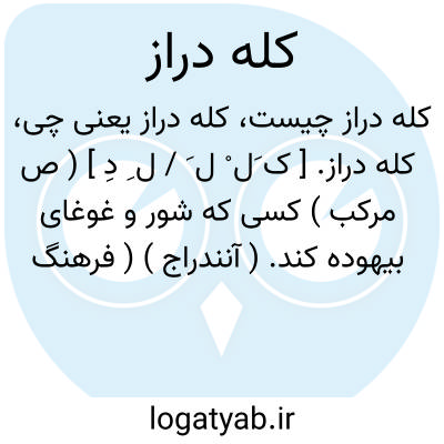 کله دراز. [ ک َل ْ ل َ / ل ِ دِ ] ( ص مرکب ) کسی که شور و غوغای بیهوده کند. ( آنندراج ) ( فرهنگ فارسی معین ). هنگامه ساز و غوغایی و زبان دراز و بدزبان و فتنه جو. ( ناظم الاطباء ):