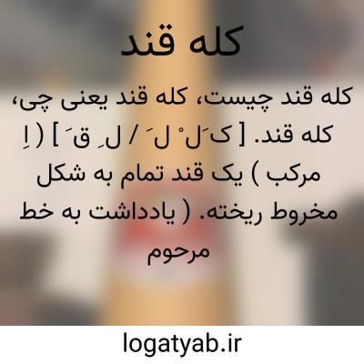 کله قند. [ ک َل ْ ل َ / ل ِ ق َ ] ( اِ مرکب ) یک قند تمام به شکل مخروط ریخته. ( یادداشت به خط مرحوم دهخدا ):