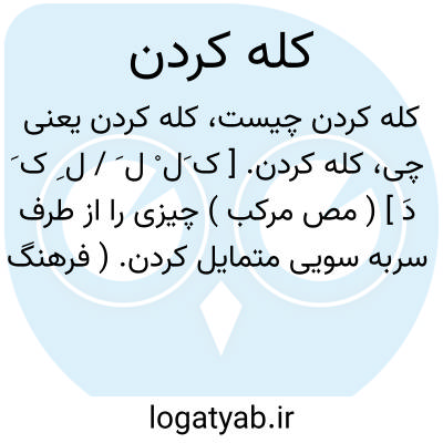 کله کردن. [ ک َل ْ ل َ / ل ِ ک َ دَ ] ( مص مرکب ) چیزی را از طرف سربه سویی متمایل کردن. ( فرهنگ عامیانه جمالزاده ).