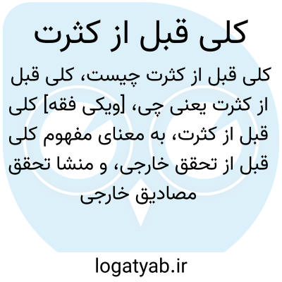 [ویکی فقه] کلی قبل از کثرت، به معنای مفهوم کلی قبل از تحقق خارجی، و منشا تحقق مصادیق خارجی است.