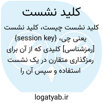 {session key} [رمزشناسی] کلیدی که از آن برای رمزگذاری متقارن در یک نشست استفاده و سپس آن را نابود می کنند