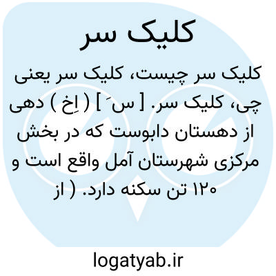 کلیک سر. [ س َ ] ( اِخ ) دهی از دهستان دابوست که در بخش مرکزی شهرستان آمل واقع است و 120 تن سکنه دارد. ( از فرهنگ جغرافیایی ایران ج 3 ).