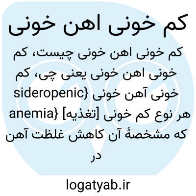 کم خونی آهن خونی {sideropenic anemia} [تغذیه] هر نوع کم خونی که مشخصۀ آن کاهش غلظت آهن در پلاسمای خون باشد