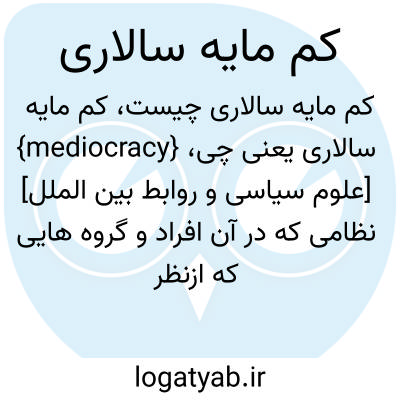 {mediocracy} [علوم سیاسی و روابط بین الملل] نظامی که در آن افراد و گروه هایی که ازنظر فکری و فرهنگی در سطح متوسط یا پایین تر قرار دارند حکومت می کنند