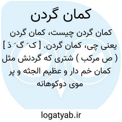 کمان گردن. [ ک َ گ َ دَ ] ( ص مرکب ) شتری که گردنش مثل کمان خم دار و عظیم الجثه و پر موی دوکوهانه می باشد. ( آنندراج ). شتر نجیب بزرگ قوی که دارای دو کوهان باشد. ( ناظم الاطباء ). شتری که گردنش مانند کمان خم دارد و بزرگ جثه باشد. ( فرهنگ فارسی معین ). || هر چیز نحیف و ضعیف که جز رگ و پی واستخوان چیزی در وی نمودار نباشد. ( ناظم الاطباء ).