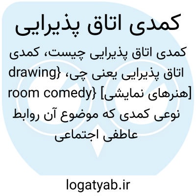 {drawing room comedy} [هنرهای نمایشی] نوعی کمدی که موضوع آن روابط عاطفی اجتماعی طبقۀ متوسط و مرفه است و مکان اصلی رویدادها اتاق پذیرایی است متـ. کمدی پذیرایی