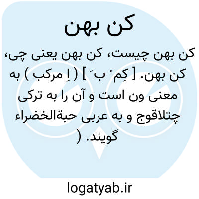 کن بهن. [ کِم ْ ب َ ] ( اِ مرکب ) به معنی ون است و آن را به ترکی چتلاقوج و به عربی حبةالخضراء گویند. ( برهان ). بار درخت بنه که ون نیز گویند و به تازی حبةالخضراء است. ( فهرست مخزن الادویه ).