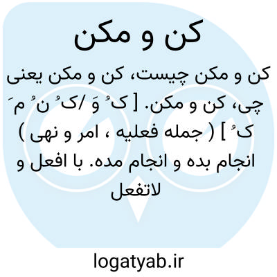 چون با عجمی کن و مکن باید گفت.؟ ( از مرصاد العباد ).خلق را از راه وعظ، کن و مکن می فرماید و گاه به زبان اهل حله ثنا می سراید. ( مقامات حمیدی از آنندراج ذیل کله ). و رجوع به کن مکن شود.