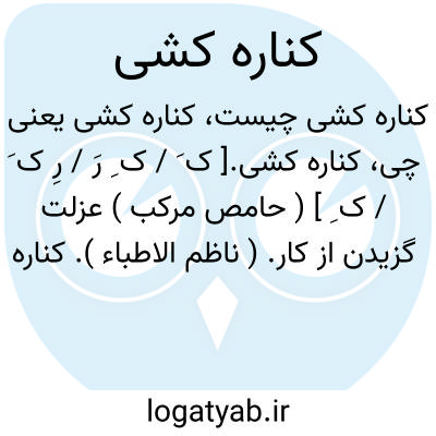کناره کشی.[ ک َ / ک ِ رَ / رِ ک َ / ک ِ ] ( حامص مرکب ) عزلت گزیدن از کار. ( ناظم الاطباء ). کناره گیری. کناره گرفتن.