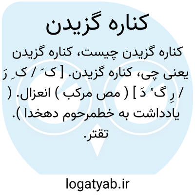 کناره گزیدن. [ ک َ / ک ِ رَ / رِ گ ُ دَ ] ( مص مرکب ) انعزال. ( یادداشت به خطمرحوم دهخدا ). تقتر. اعتناز.تعزل. اعتزال. استعناز.( منتهی الارب ). گوشه گرفتن. دوری جستن. کناره کردن.