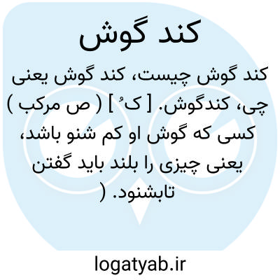 کندگوش. [ ک ُ ] ( ص مرکب ) کسی که گوش او کم شنو باشد، یعنی چیزی را بلند باید گفتن تابشنود. ( برهان ) ( از آنندراج ). آنکه گوش وی کم شنود و تا بلند نگویند نشنود. ( ناظم الاطباء ):